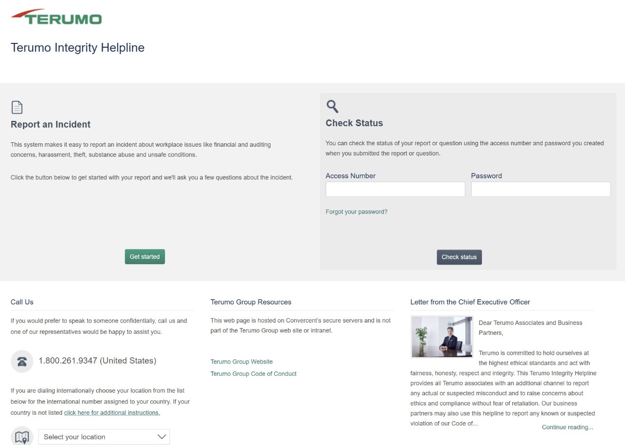 Le site Web en matière d’éthique et de conformité est accessible à l’adresse : www.terumointegrity.com